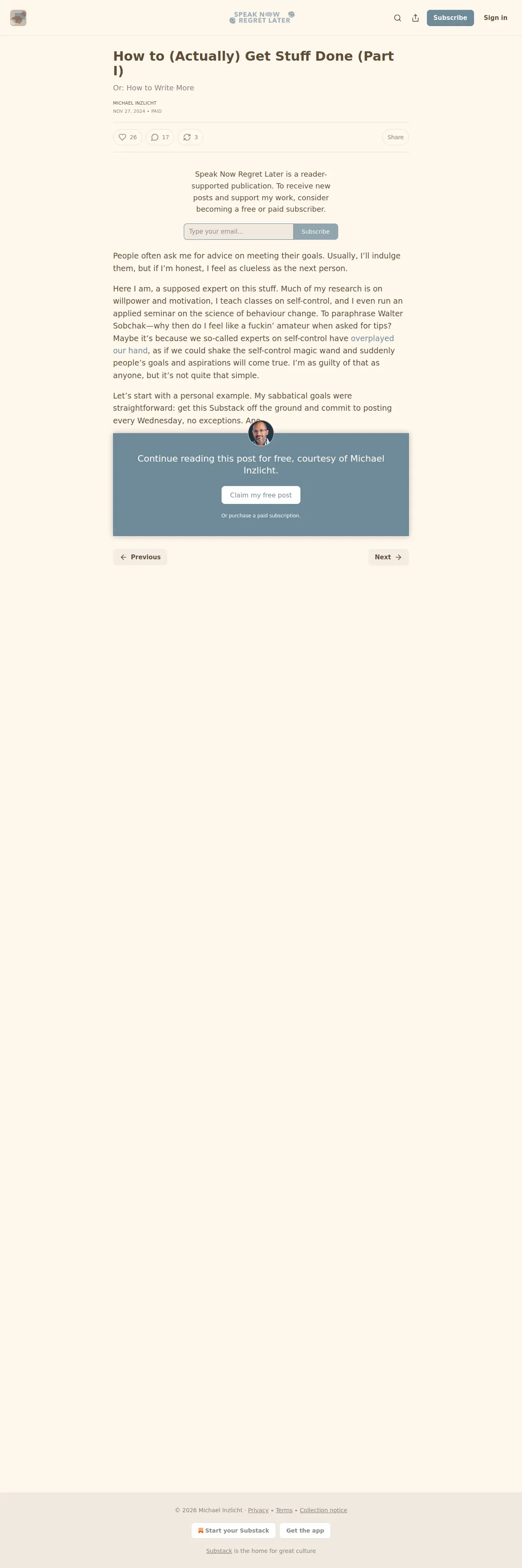 https://www.speakandregret.michaelinzlicht.com:443/p/how-to-actually-get-stuff-done