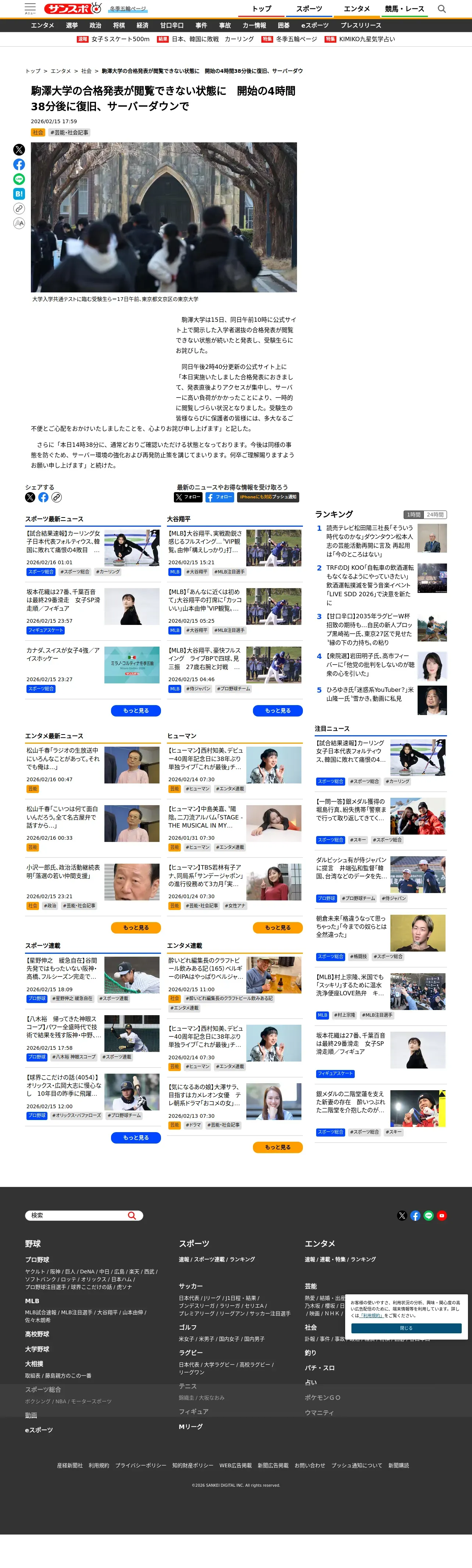 https://www.sanspo.com:443/article/20260215-VKLJQ6TLGVCJPC3Y77HVYHEMD4/