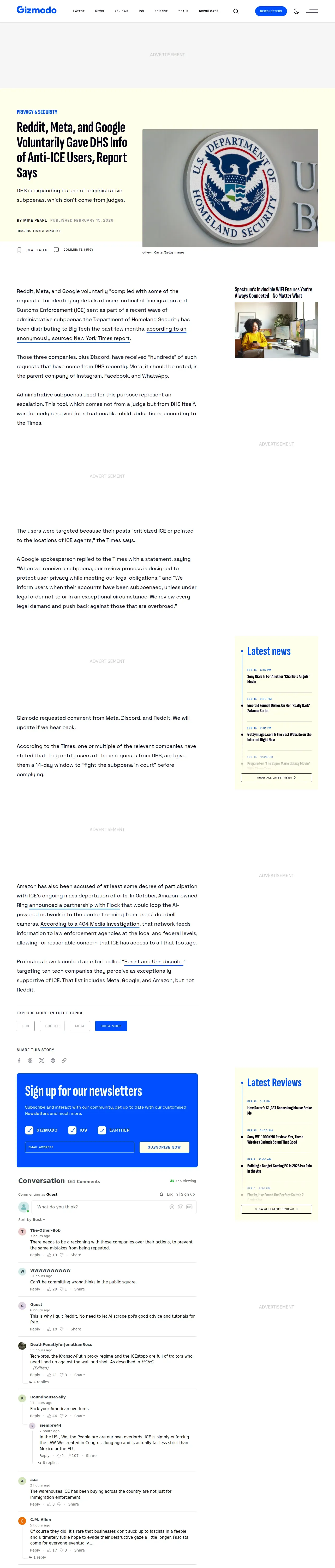 https://gizmodo.com:443/reddit-meta-and-google-voluntarily-gave-dhs-info-of-anti-ice-users-report-says-2000722279