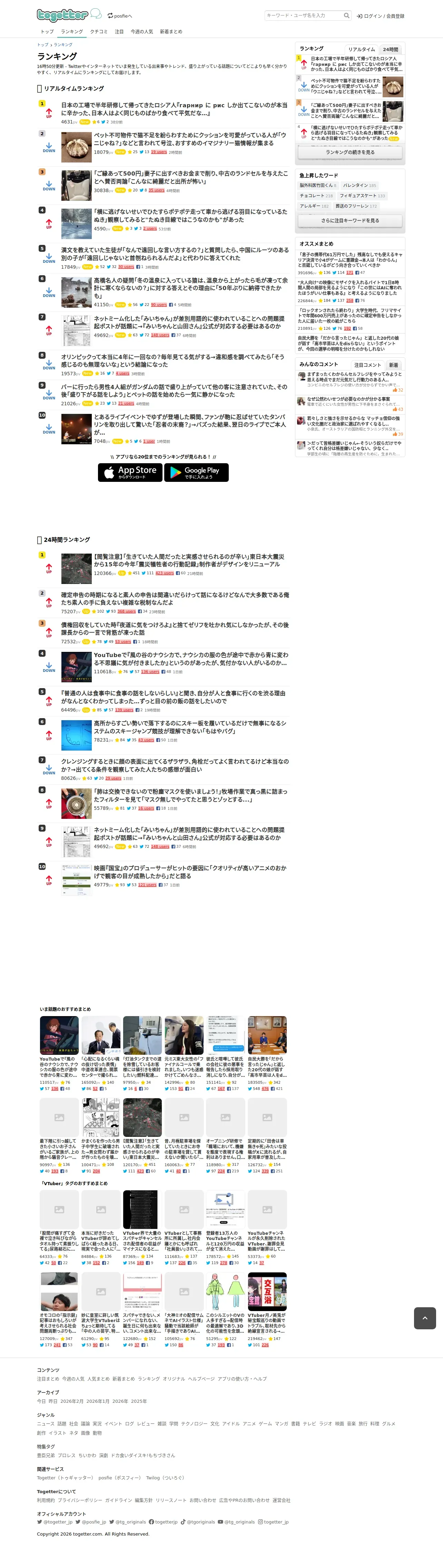 https://togetter.com:443/ranking