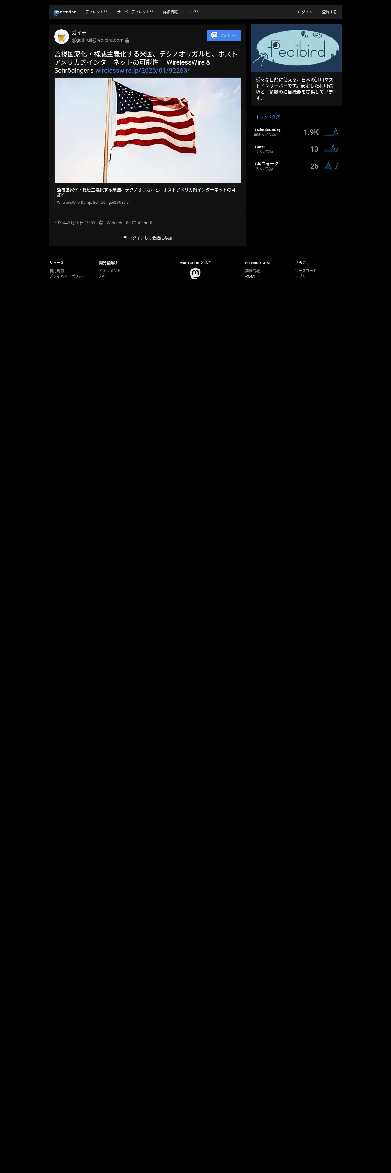 取得元URL: https://fedibird.com:443/@gaitifuji/116079923132880568