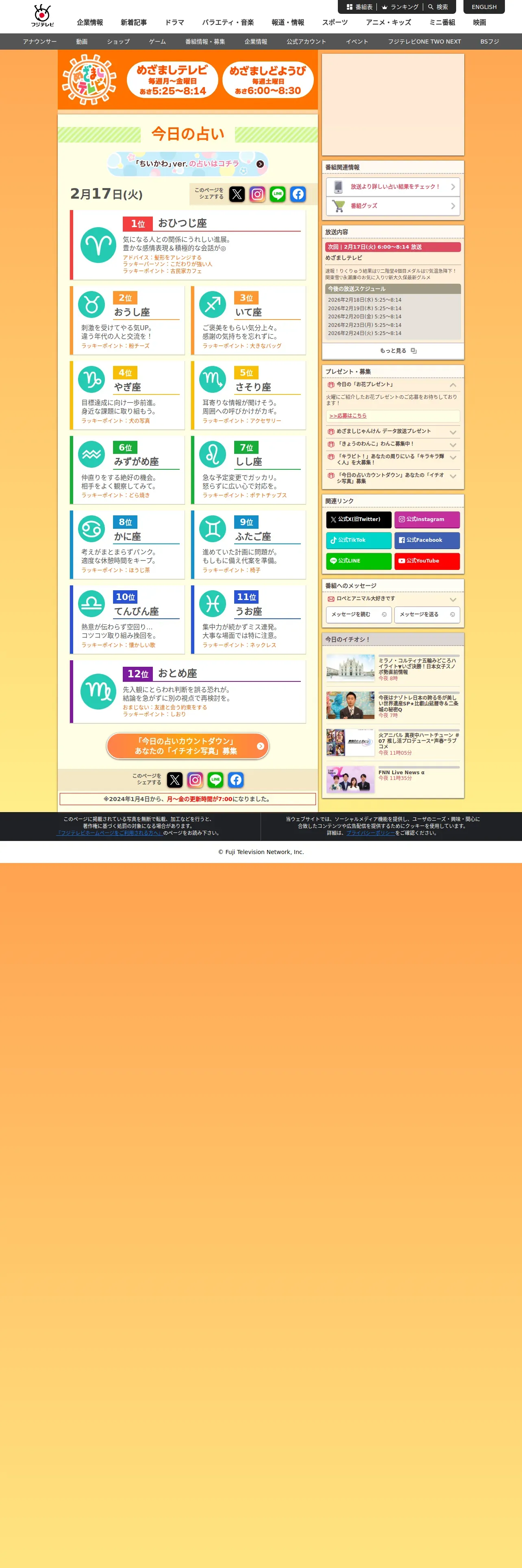 https://www.fujitv.co.jp:443/meza/uranai/index.html
