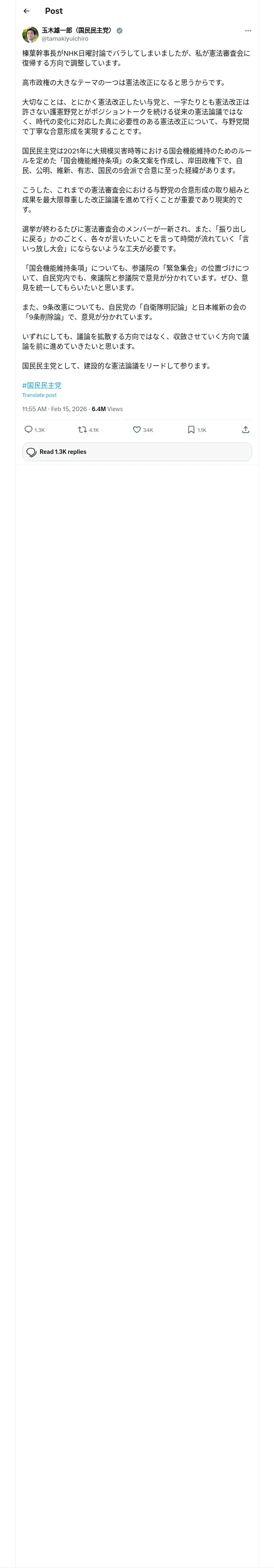 https://x.com:443/tamakiyuichiro/status/2022867430369083732