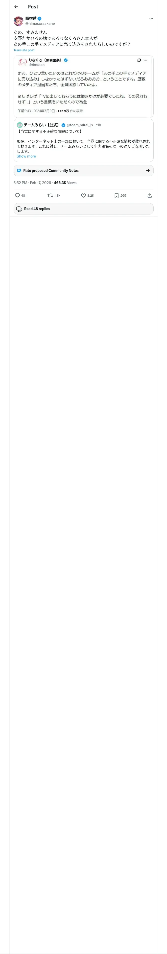 https://x.com:443/himasoraakane/status/2023681853673341283