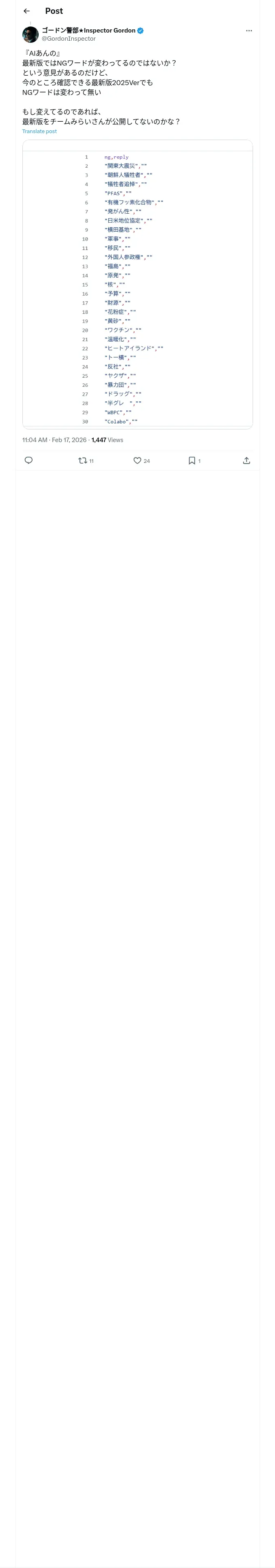 取得元URL: https://x.com:443/GordonInspector/status/2023579205683052636