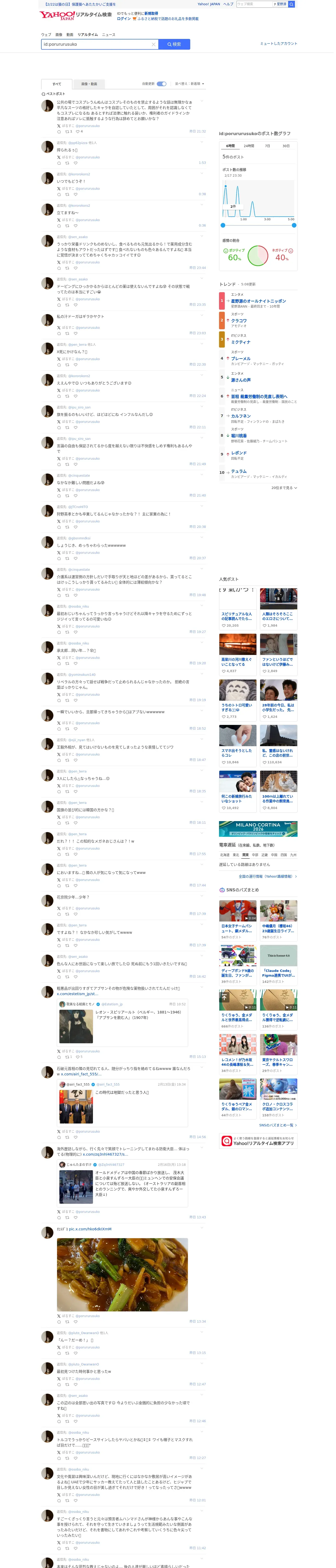 https://search.yahoo.co.jp:443/realtime/search?p=id%3Aporururusuko