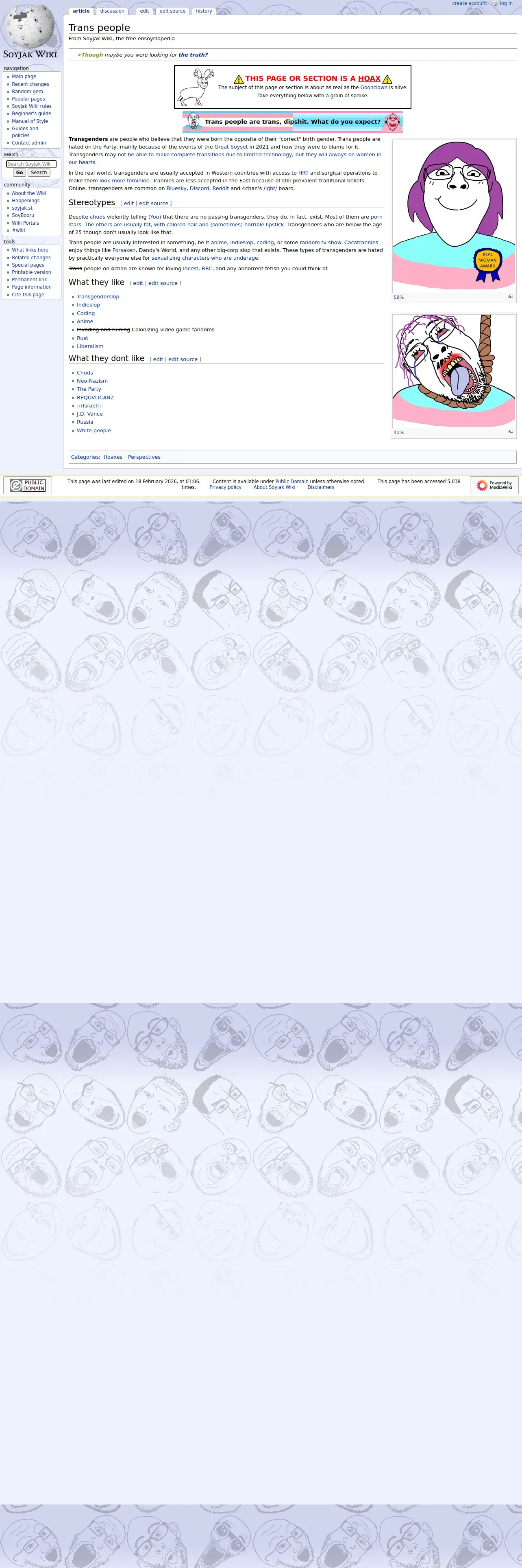 https://soyjakwiki.org:443/Trannies_(neutral_perspective)