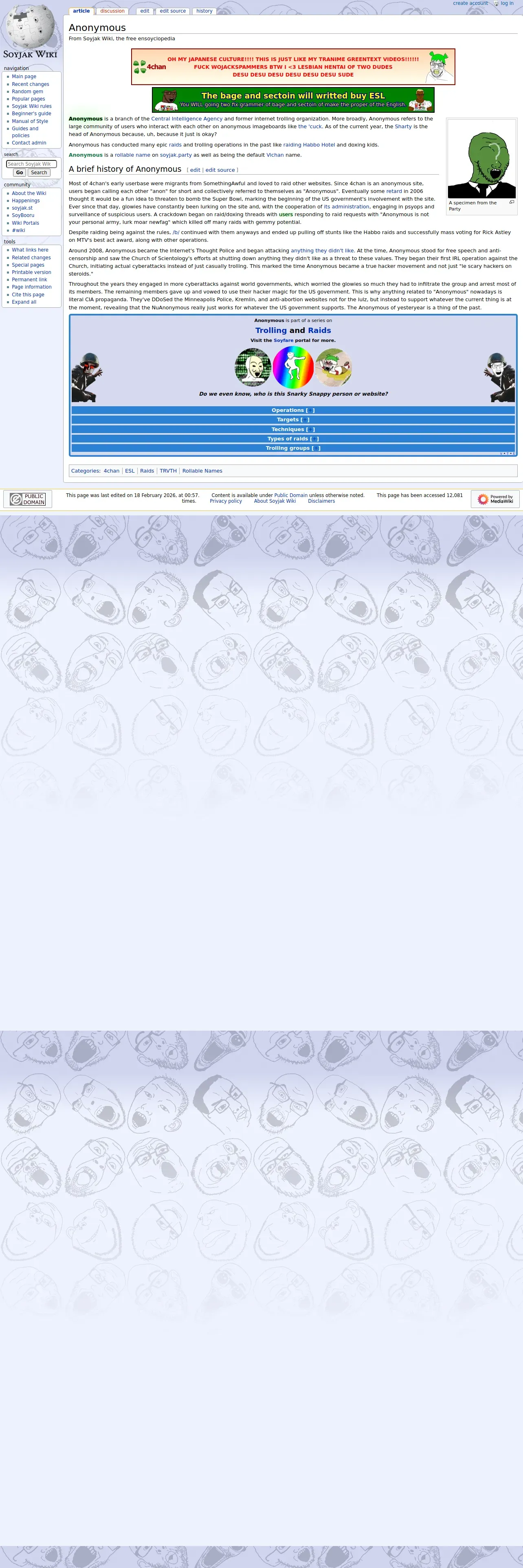 https://soyjakwiki.org:443/Anonymous