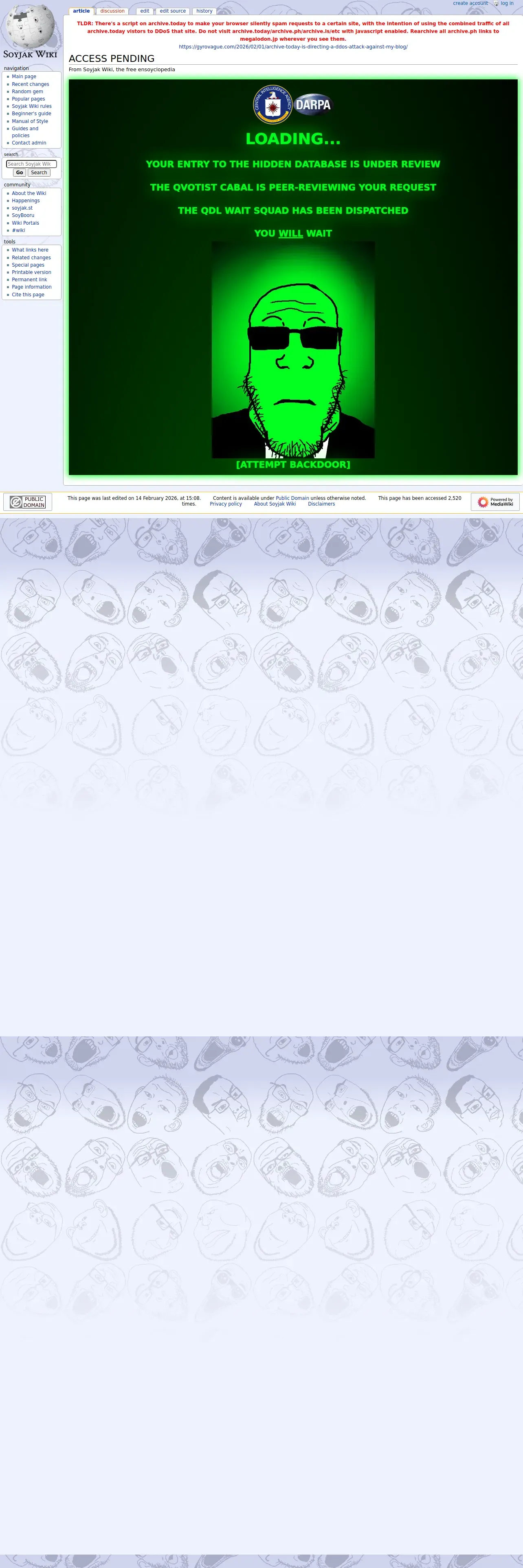 https://soyjakwiki.org:443/ACCESS_PENDING