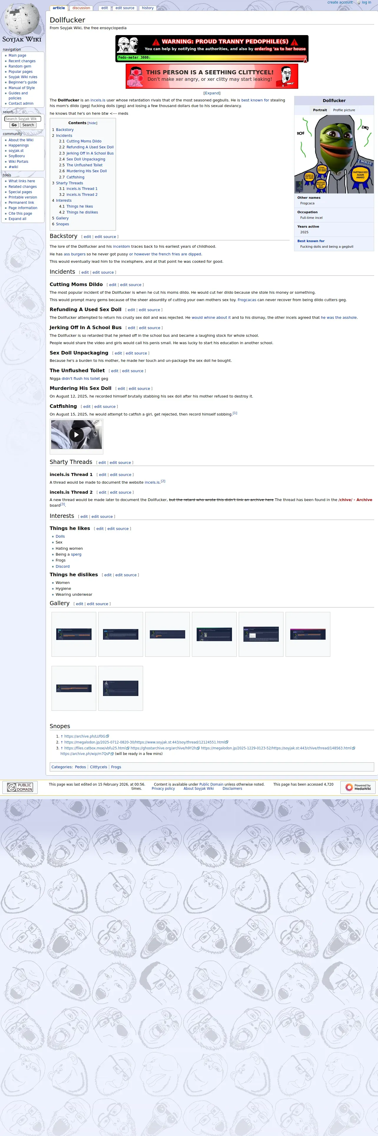 https://soyjakwiki.org:443/Dollfucker