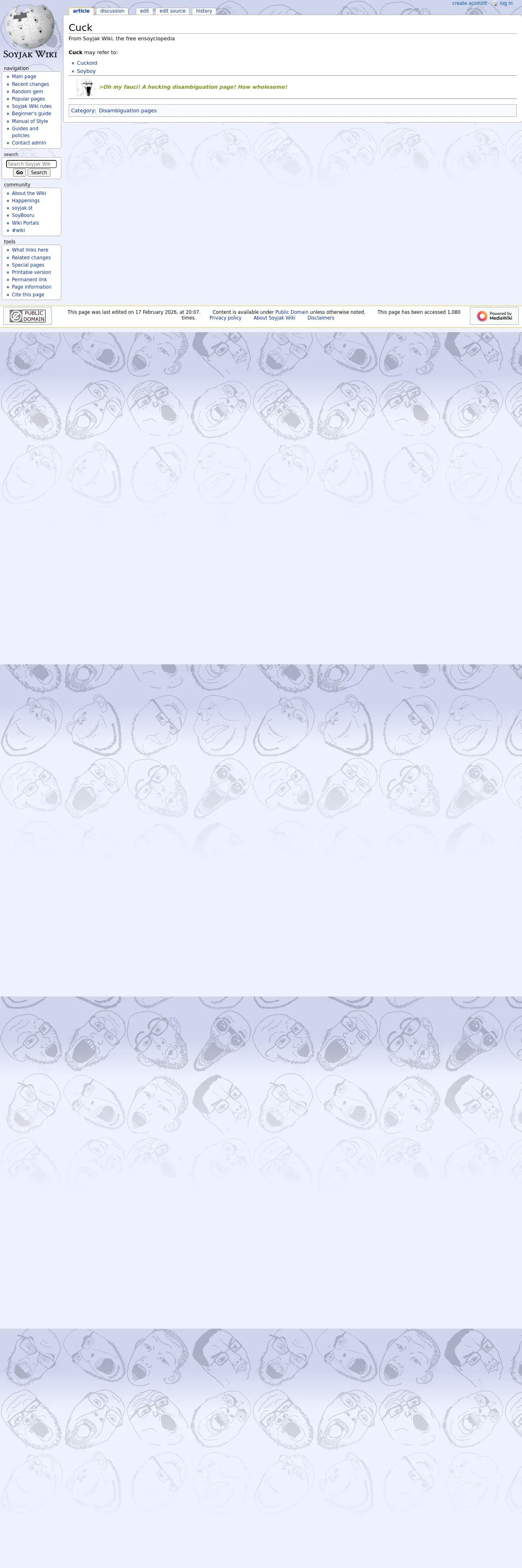 https://soyjakwiki.org:443/Cuck