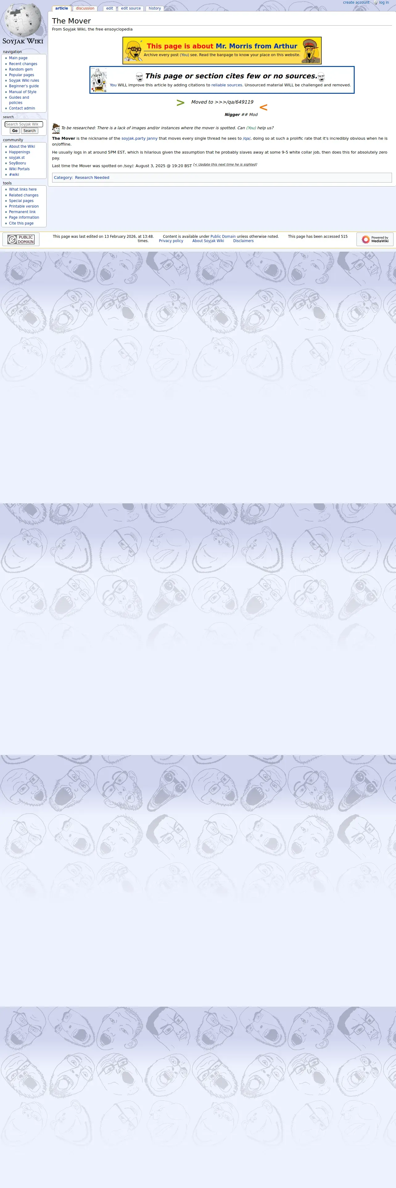 https://soyjakwiki.org:443/The_Mover