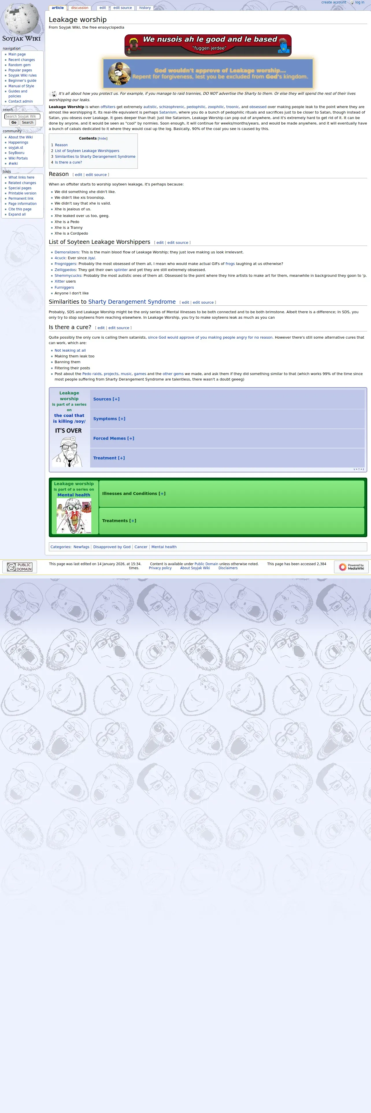 https://soyjakwiki.org:443/Leakage_worship