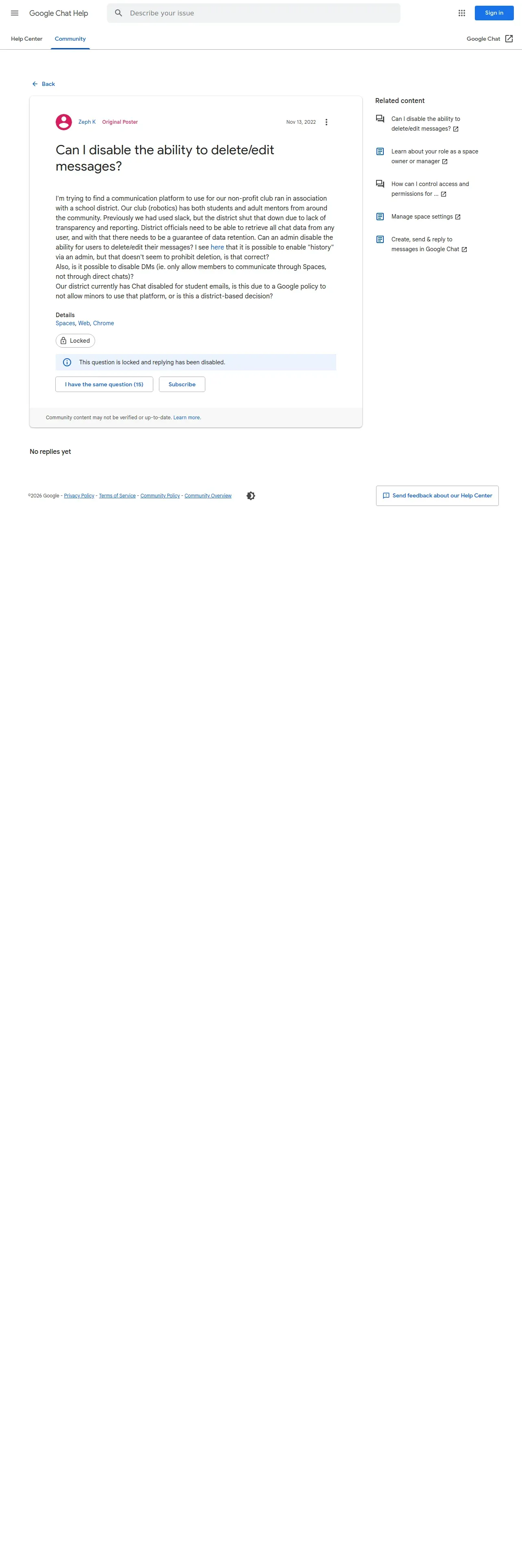 https://support.google.com:443/chat/thread/188353413/can-i-disable-the-ability-to-delete-edit-messages?hl=en