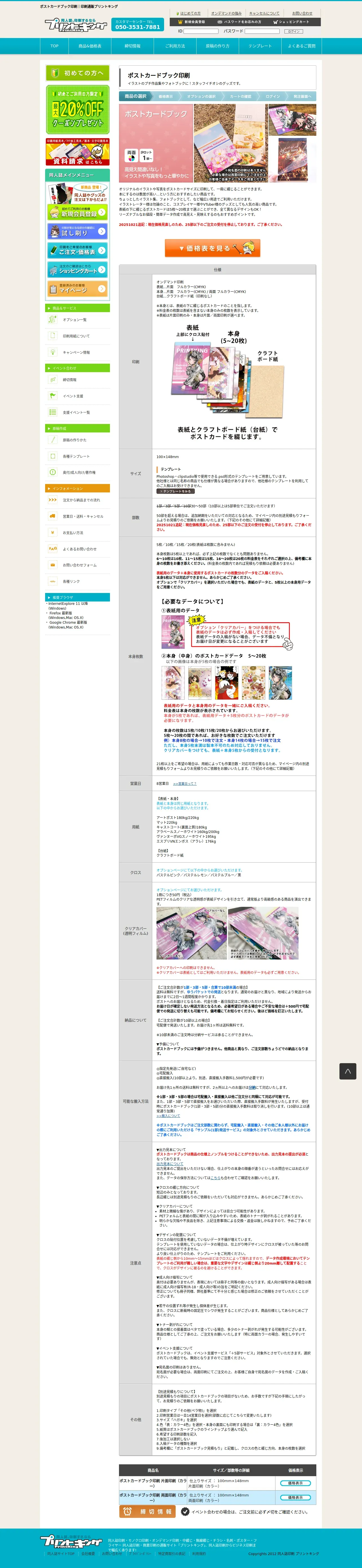https://printking.co.jp:443/omitumori/doujinshi_postcardbook.php
