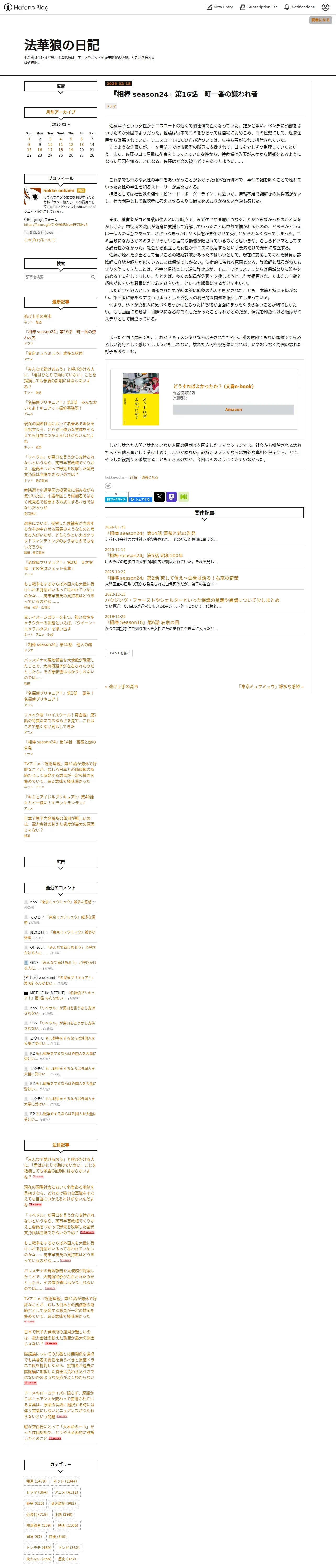 取得元URL: https://hokke-ookami.hatenablog.com:443/entry/20260218/1771340400