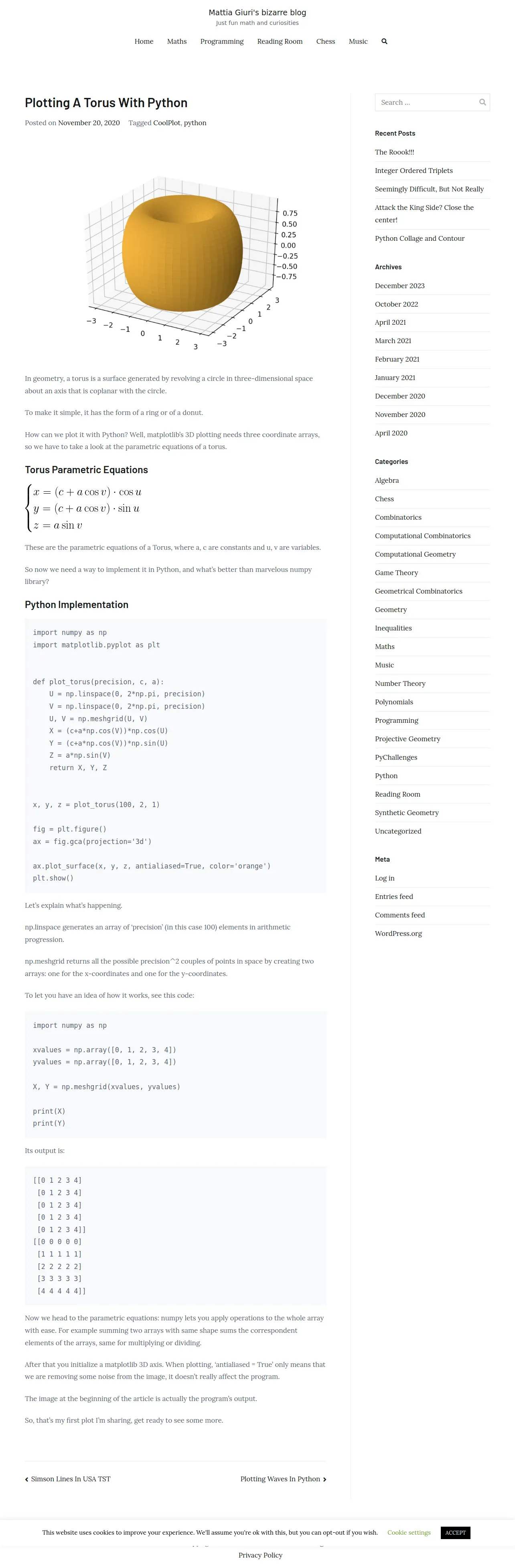 https://www.mattiagiuri.com:443/2020/11/20/plotting-a-torus-with-python/