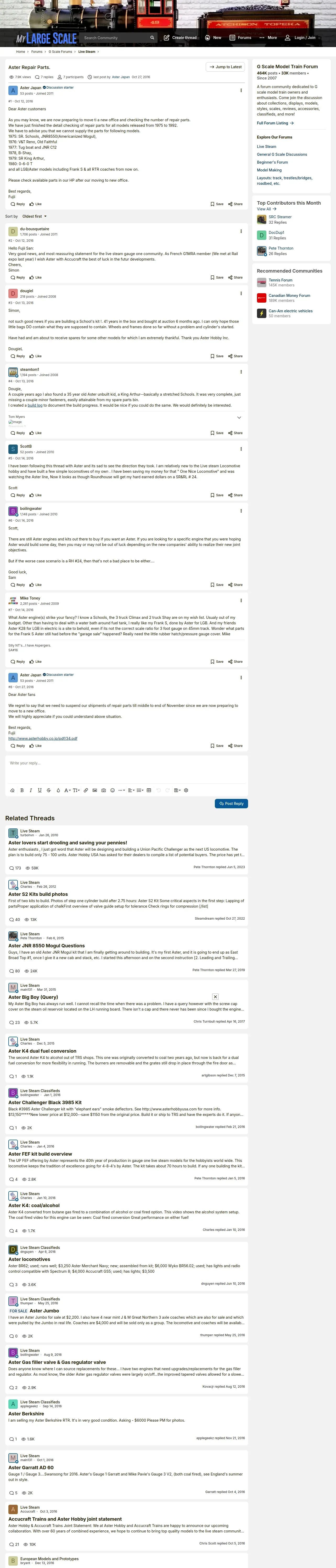 https://www.mylargescale.com:443/threads/aster-repair-parts.71762/