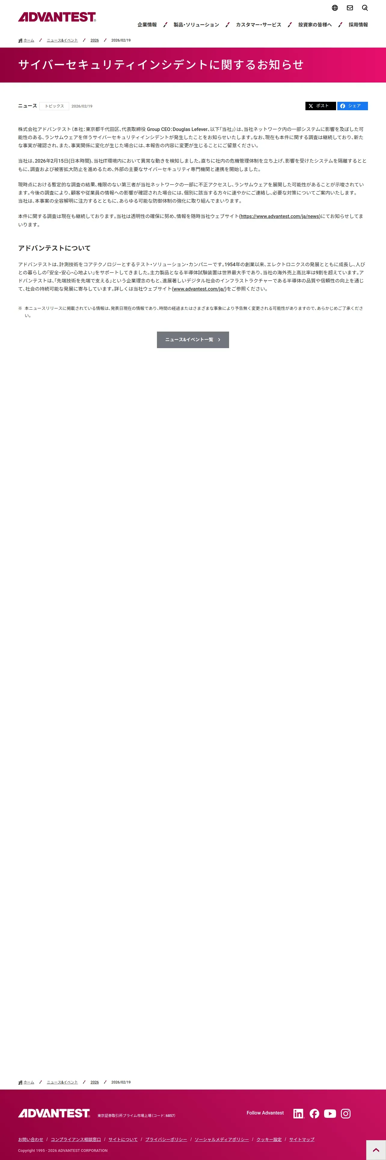 https://www.advantest.com:443/ja/news/2026/20260219.html