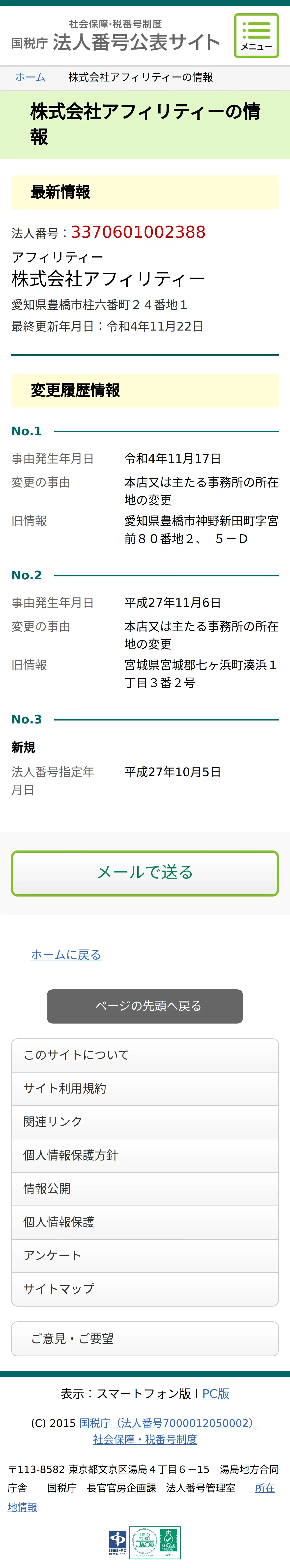 https://www.houjin-bangou.nta.go.jp:443/henkorireki-johoto.html?selHouzinNo=3370601002388