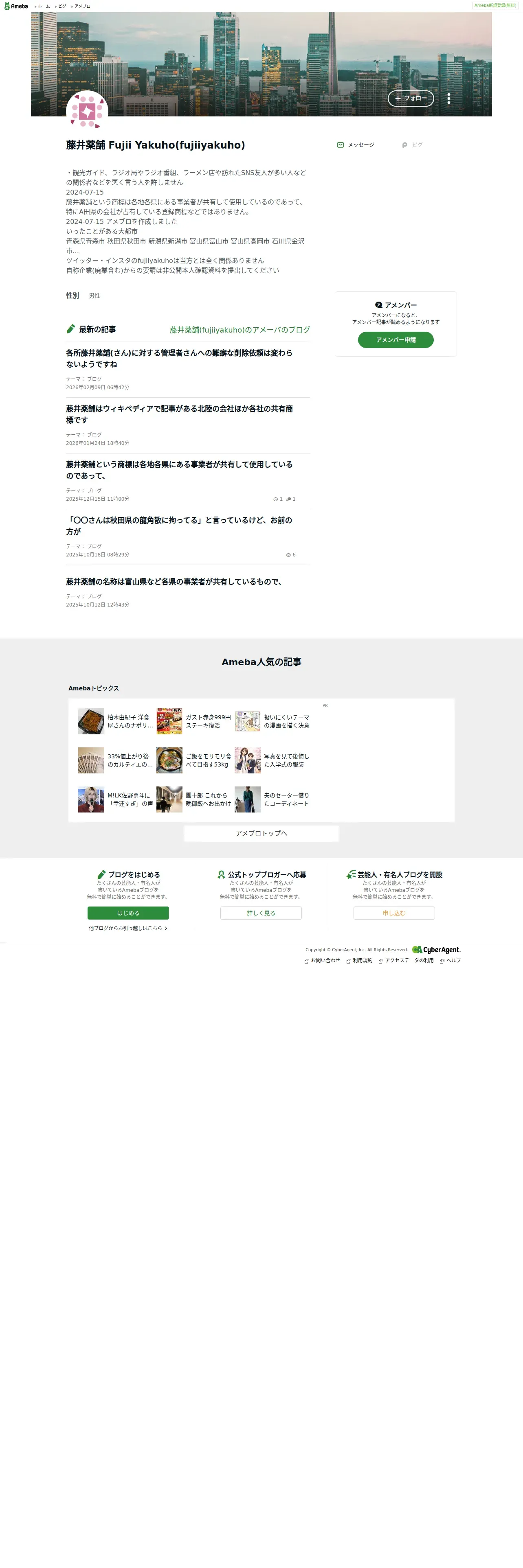 取得元URL: https://www.ameba.jp:443/profile/general/fujiiyakuho/