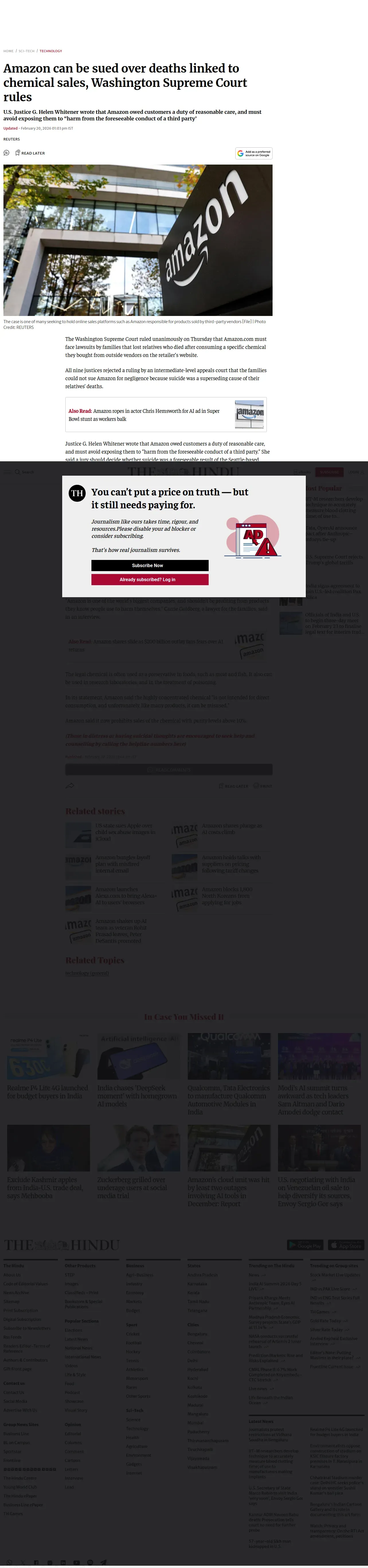 https://www.thehindu.com:443/sci-tech/technology/amazon-can-be-sued-over-deaths-linked-to-chemical-sales-washington-supreme-court-rules/article70654624.ece