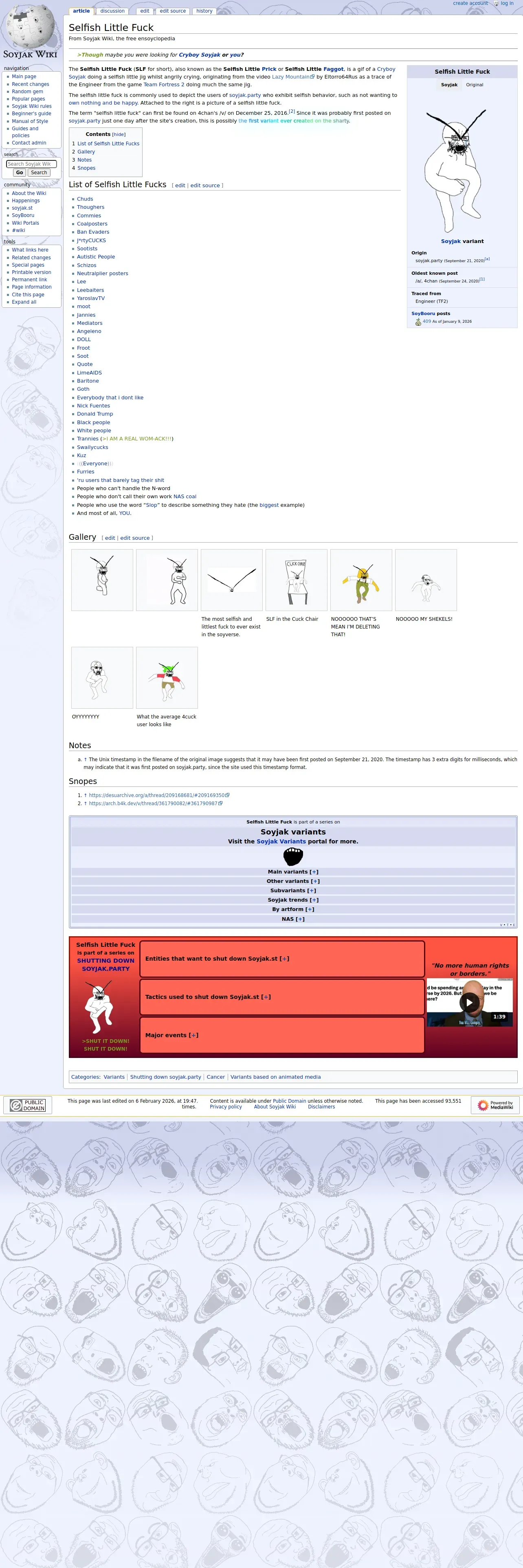 https://soyjakwiki.org:443/Selfish_Little_Fuck