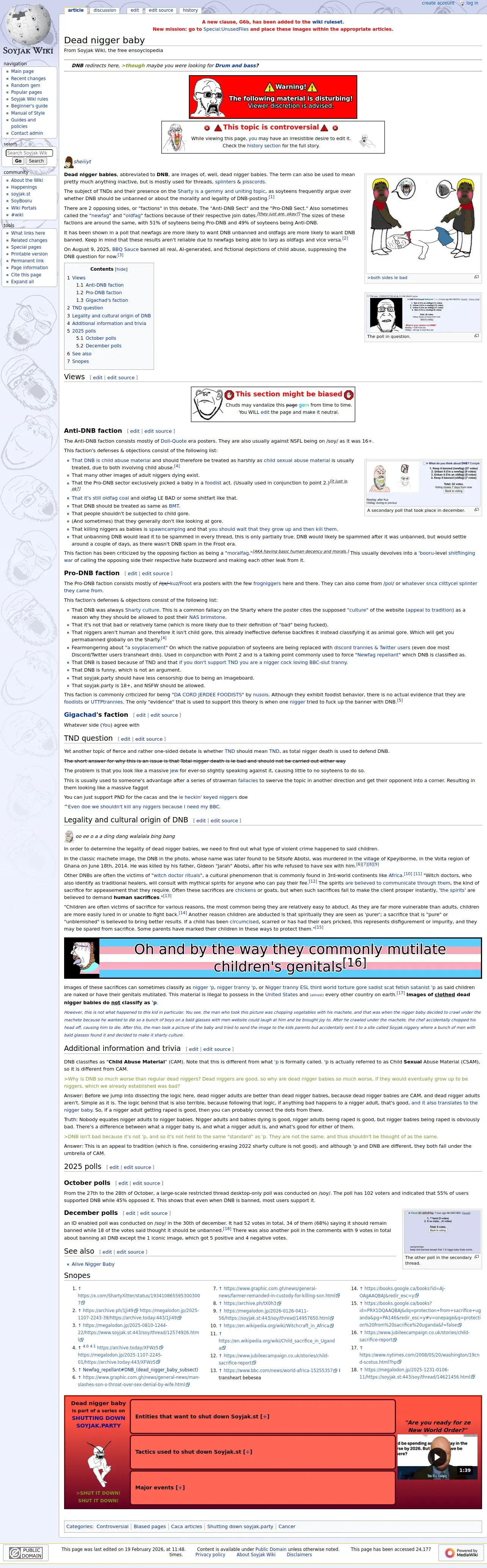 https://soyjakwiki.org:443/Dead_nigger_baby