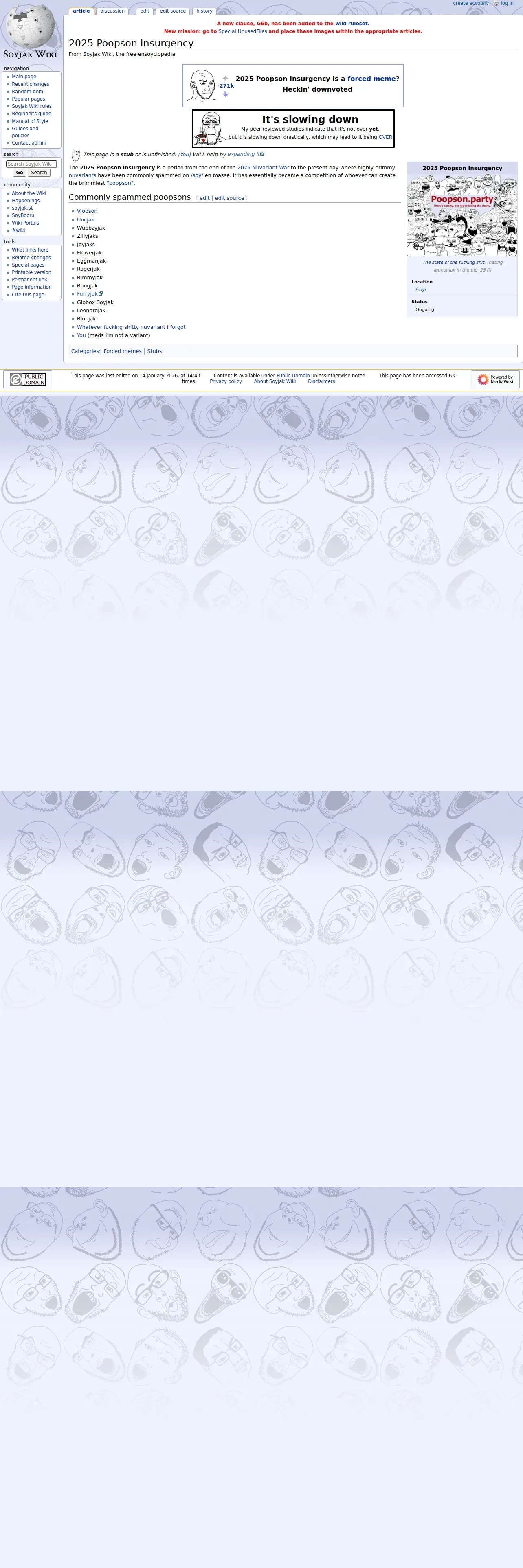 取得元URL: https://soyjakwiki.org:443/2025_Poopson_Insurgency