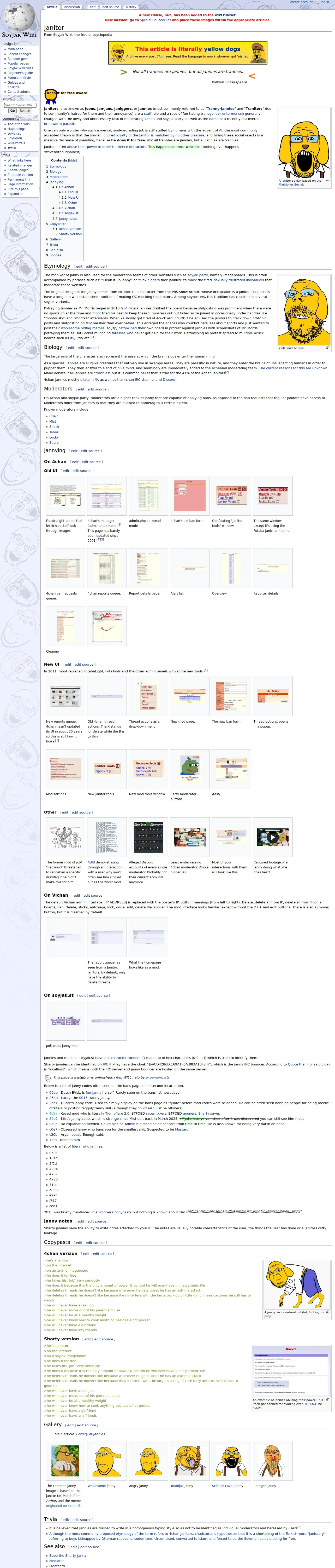 https://soyjakwiki.org:443/Janitor