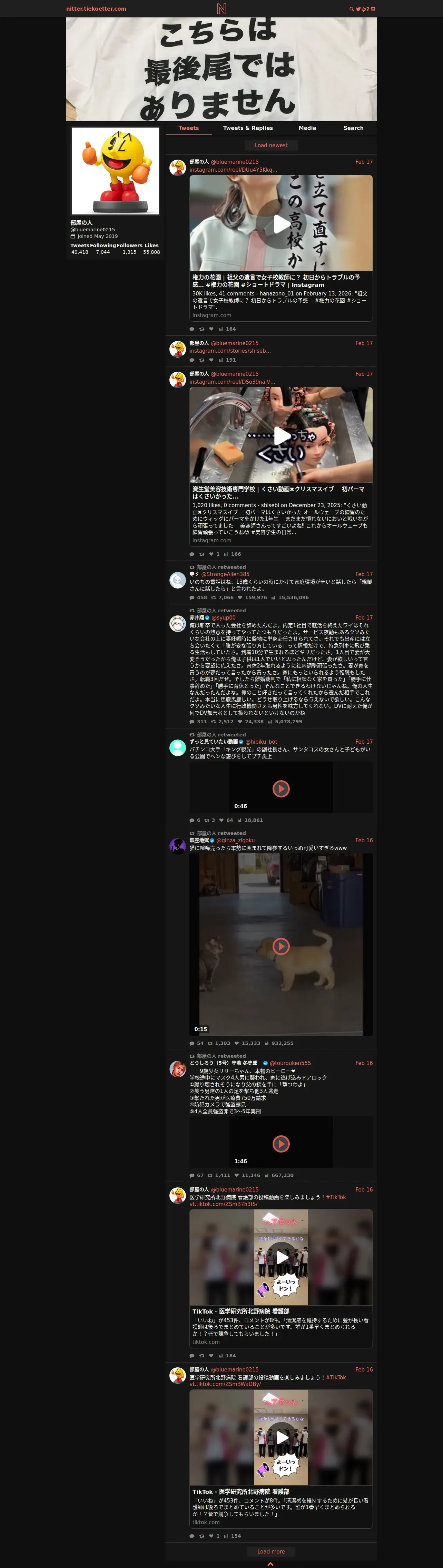 取得元URL: https://nitter.tiekoetter.com:443/bluemarine0215?cursor=DAAHCgABHBi7S-N___kLAAIAAAATMjAyMzk1MzAwNzY5Njg2MzYwNggAAwAAAAIAAA