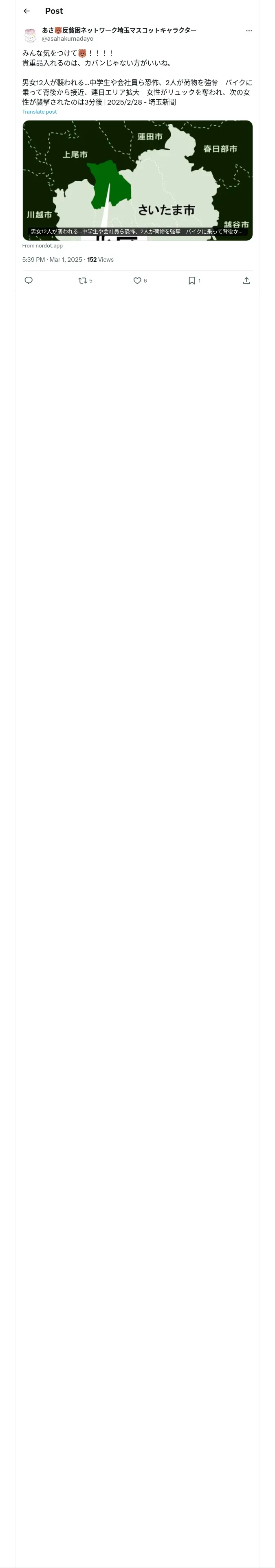 取得元URL: https://x.com:443/asahakumadayo/status/1895755662485049501