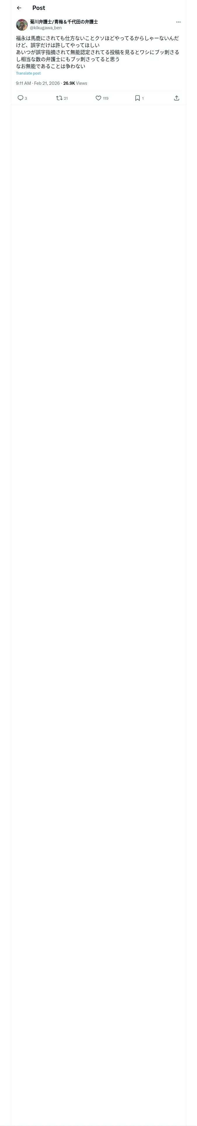取得元URL: https://x.com:443/kikugawa_ben/status/2025000478917239065