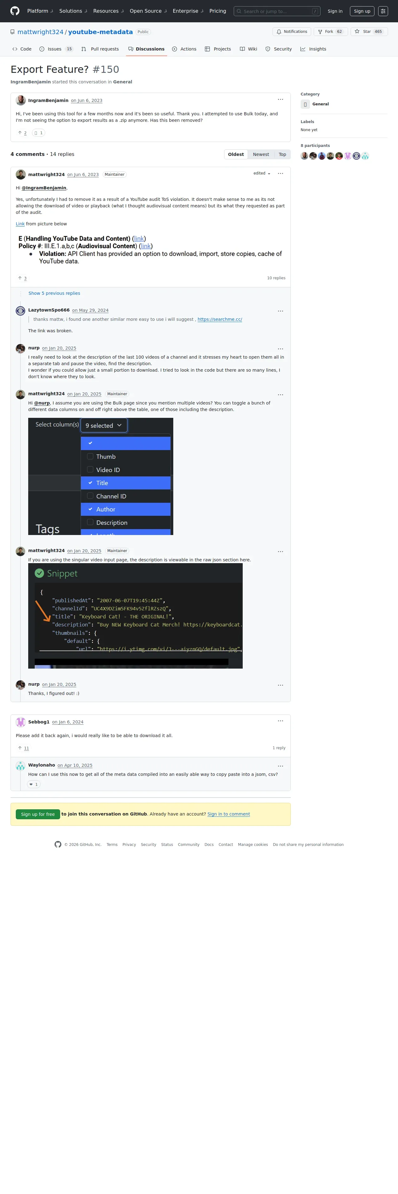 https://github.com:443/mattwright324/youtube-metadata/discussions/150
