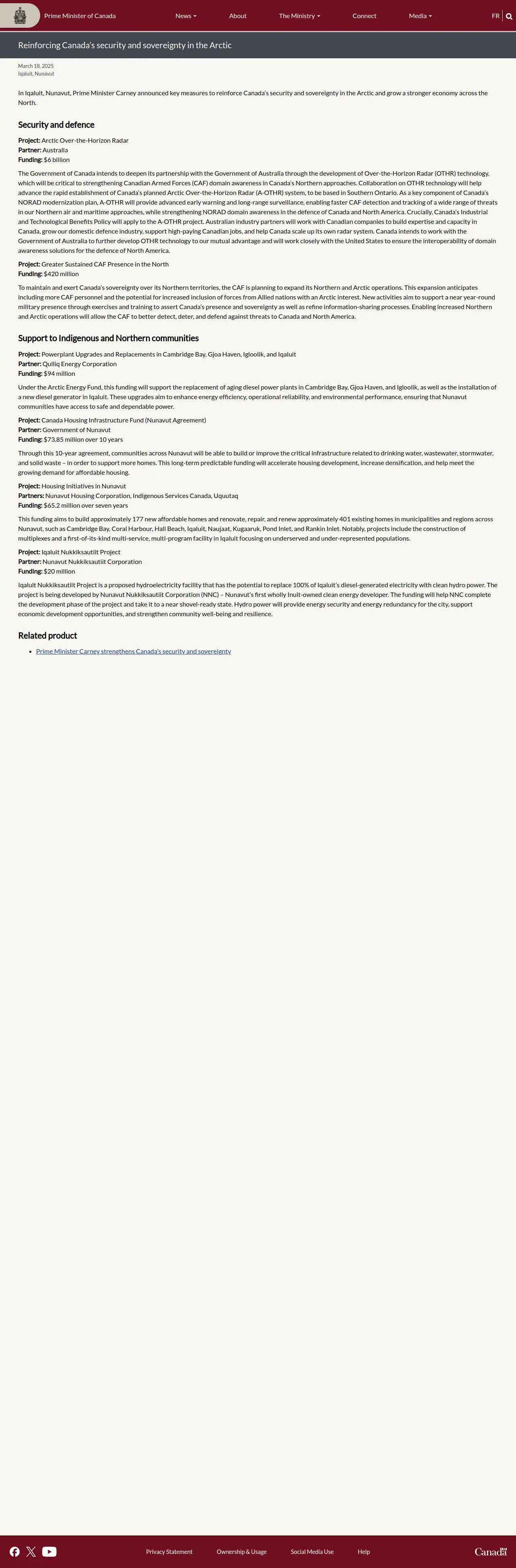 取得元URL: https://www.pm.gc.ca:443/en/news/backgrounders/2025/03/18/reinforcing-canadas-security-and-sovereignty-arctic