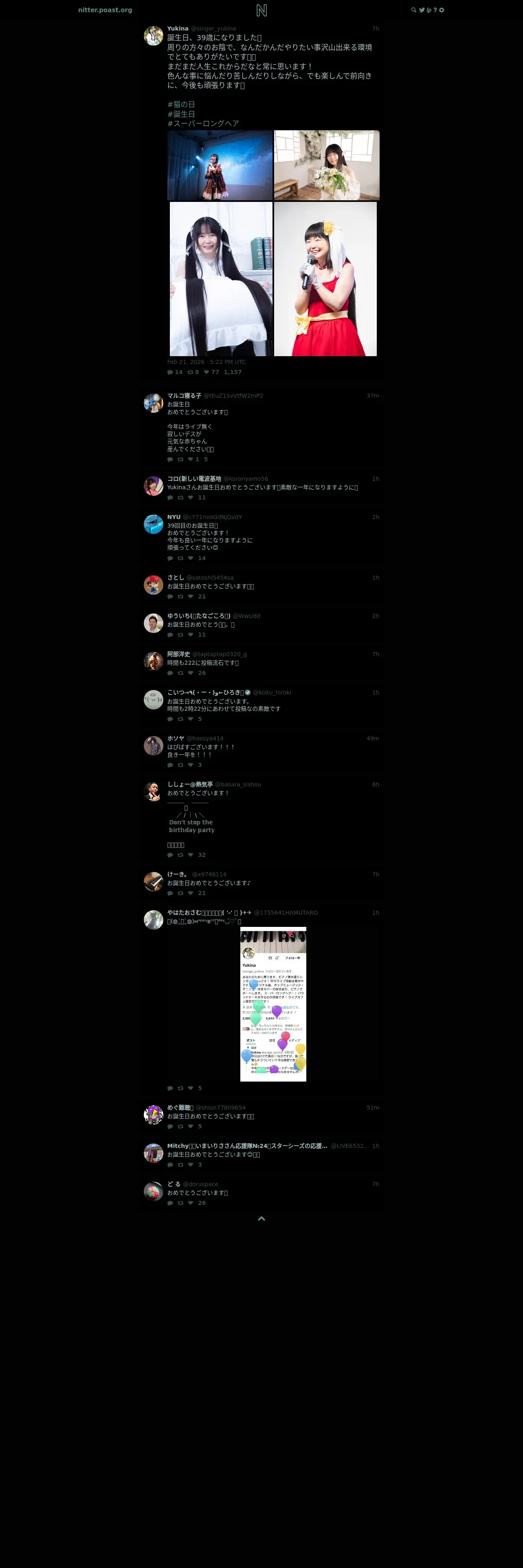 取得元URL: https://nitter.poast.org:443/singer_yukina/status/2025259745595248750