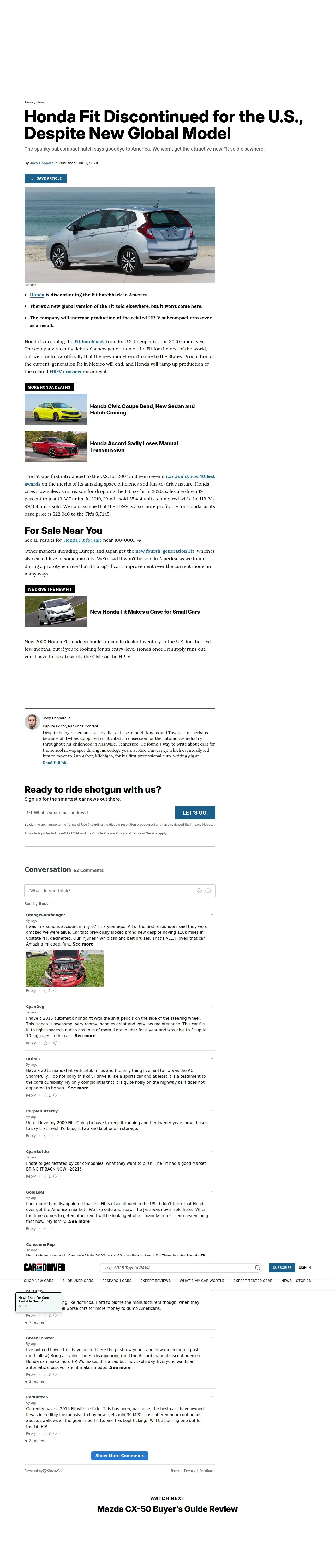 https://www.caranddriver.com:443/news/a33337398/honda-fit-discontinued-for-the-us-despite-new-global-model/