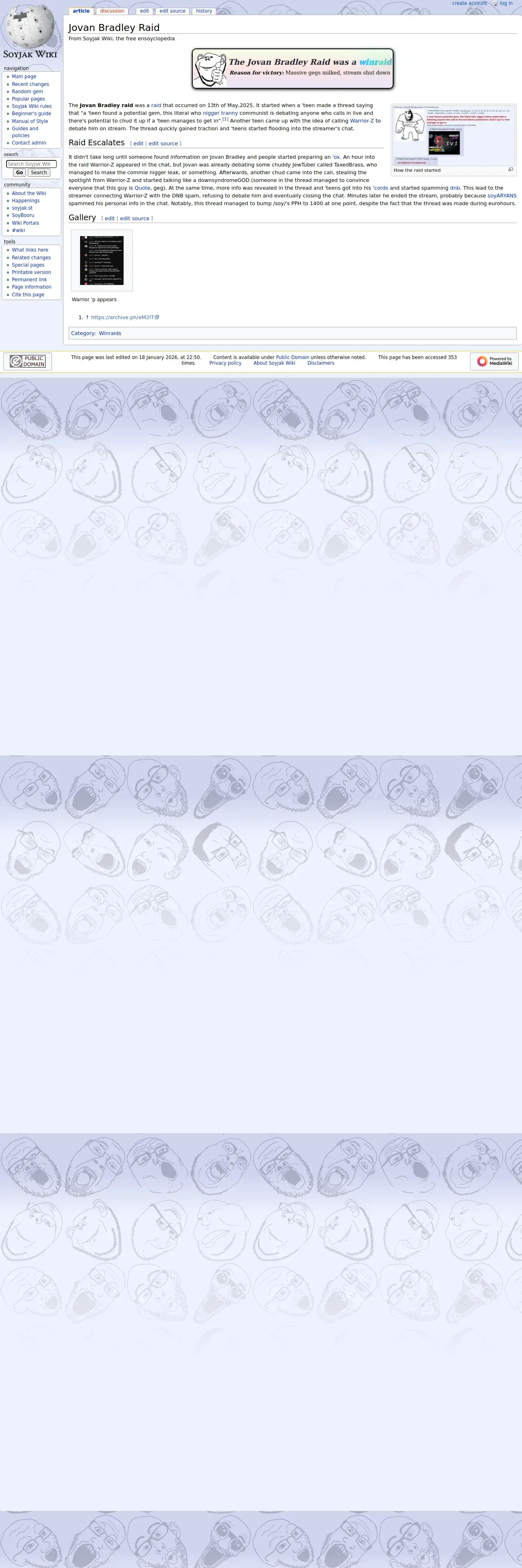https://soyjakwiki.org:443/Jovan_Bradley_Raid