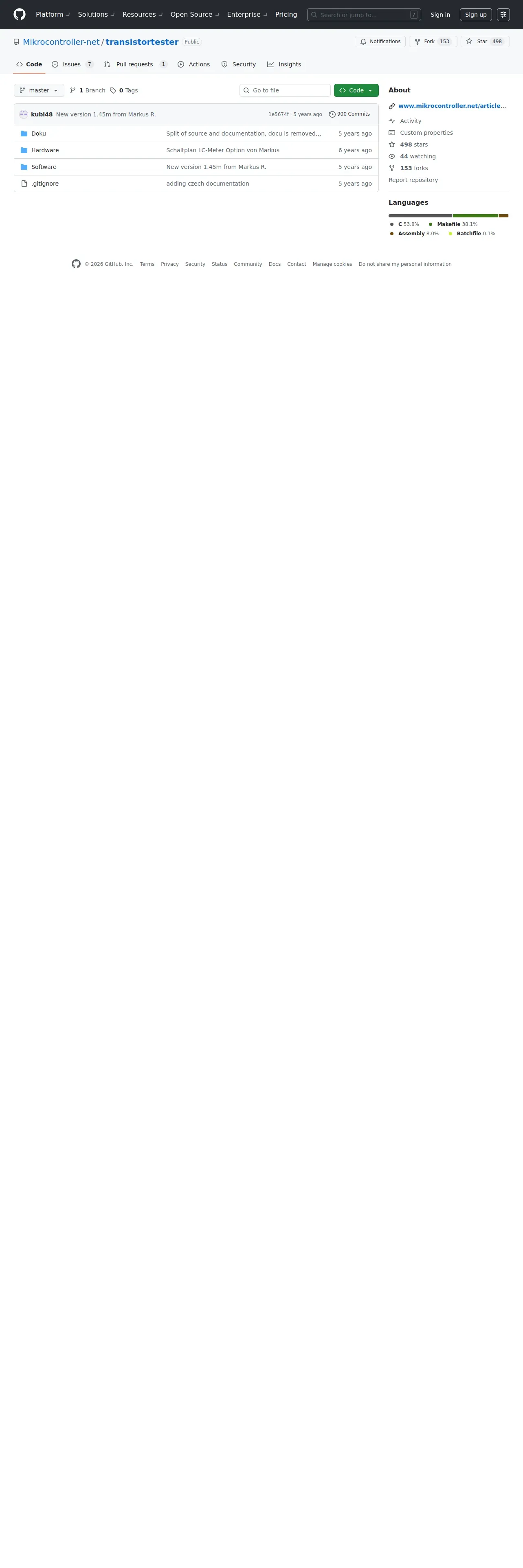https://github.com:443/Mikrocontroller-net/transistortester