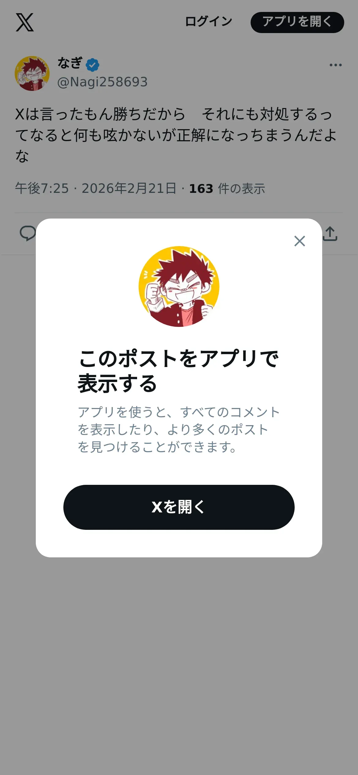 https://x.com:443/Nagi258693/status/2025154784479842511