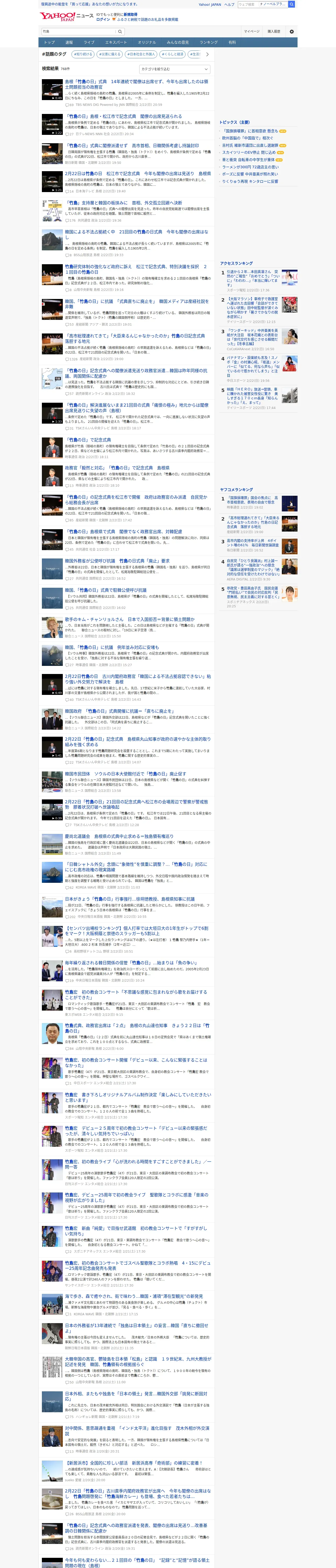 取得元URL: https://news.yahoo.co.jp:443/search?p=%E7%AB%B9%E5%B3%B6