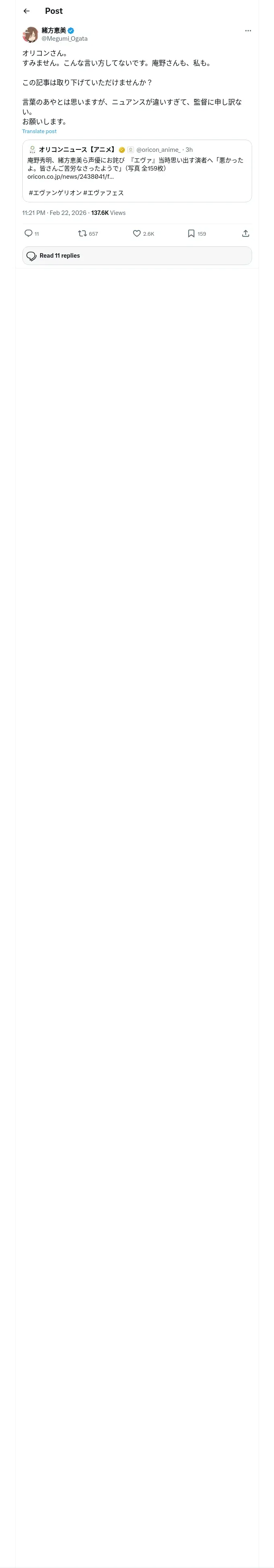 https://x.com:443/Megumi_Ogata/status/2025576705180766410