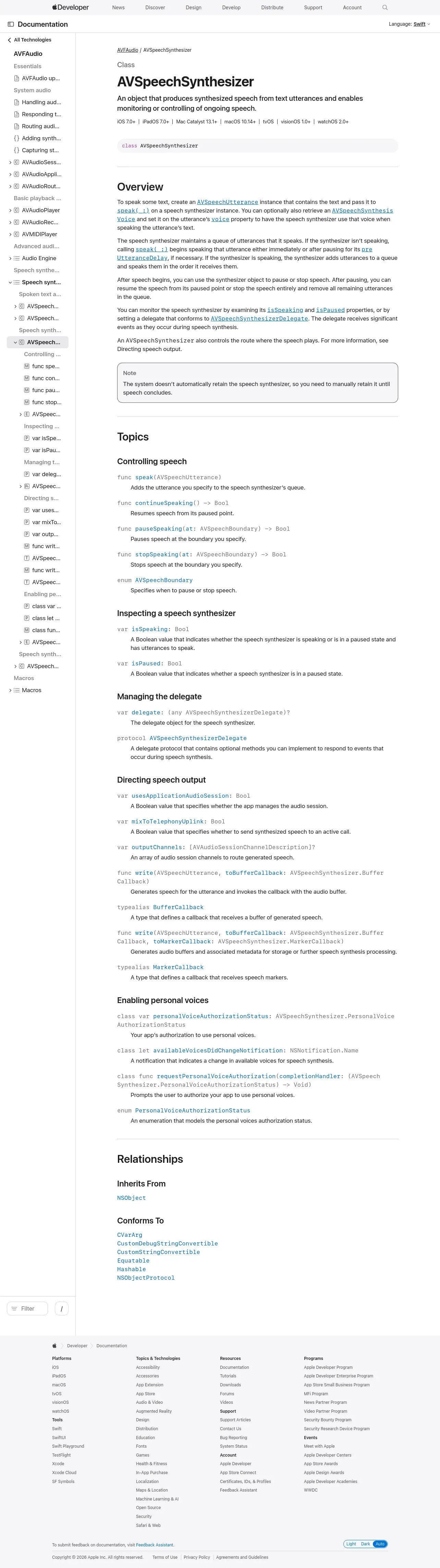 https://developer.apple.com:443/documentation/avfaudio/avspeechsynthesizer