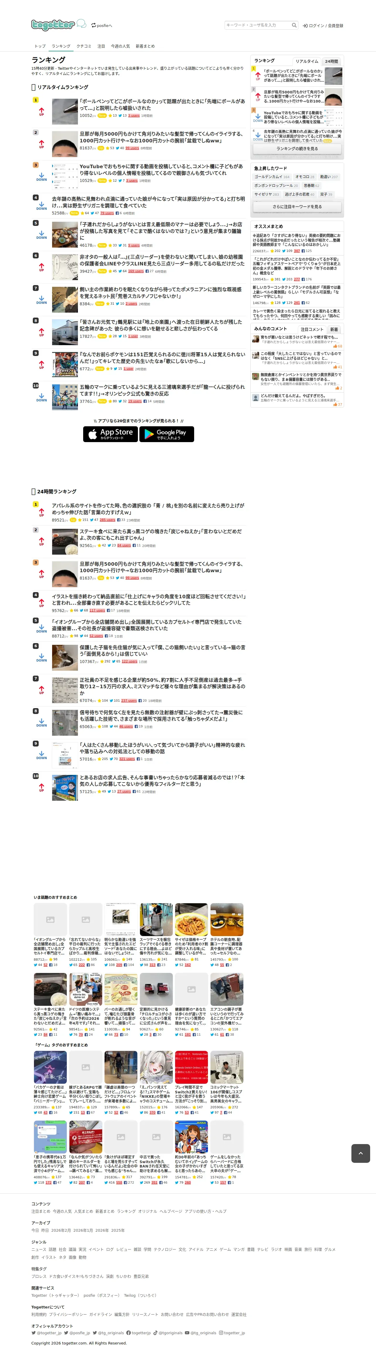 https://togetter.com:443/ranking