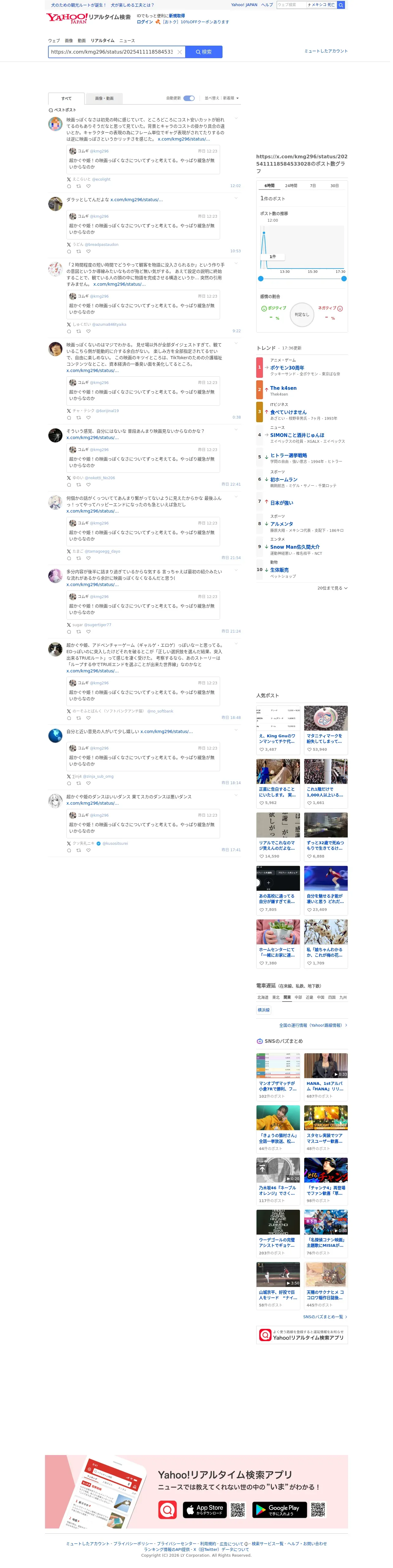 https://search.yahoo.co.jp:443/realtime/search?ei=UTF-8&md=t&p=https%3A%2F%2Fx.com%2Fkmg296%2Fstatus%2F2025411118584533028