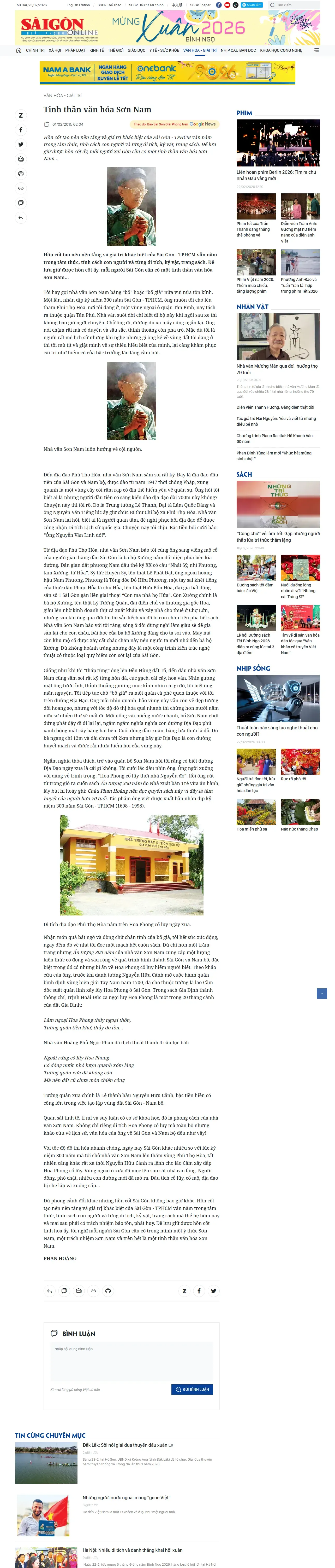 https://www.sggp.org.vn:443/tinh-than-van-hoa-son-nam-post140004.html
