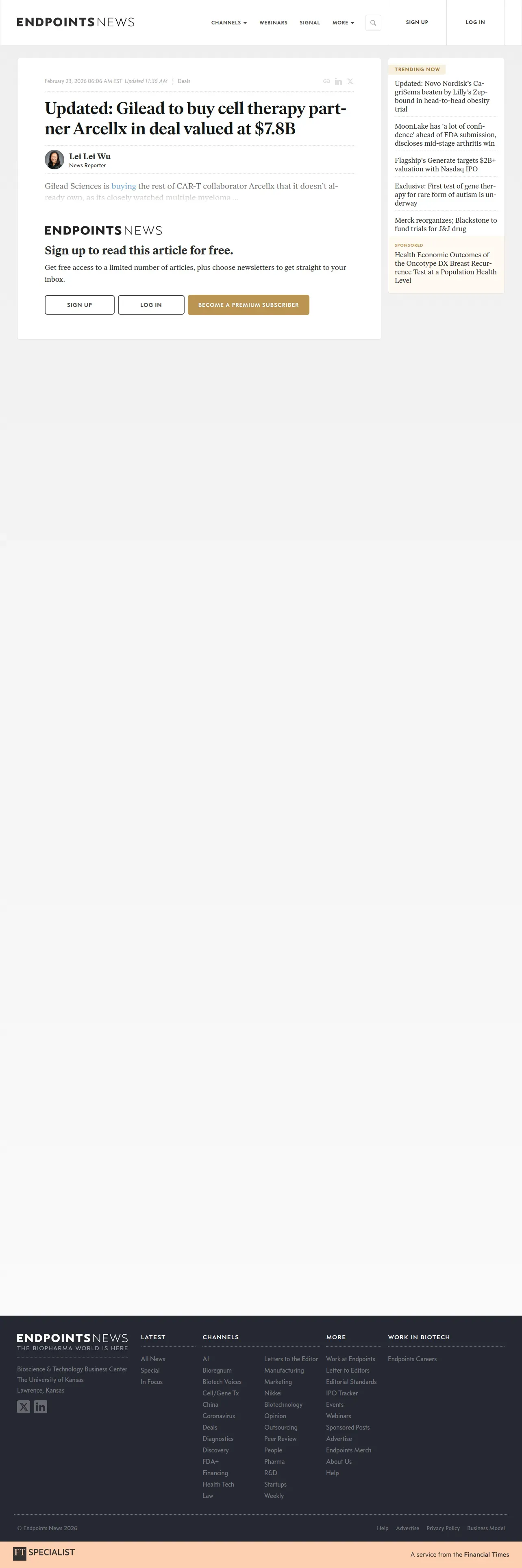 https://endpoints.news:443/gilead-to-acquire-cell-therapy-partner-arcellx-for-7-8b/