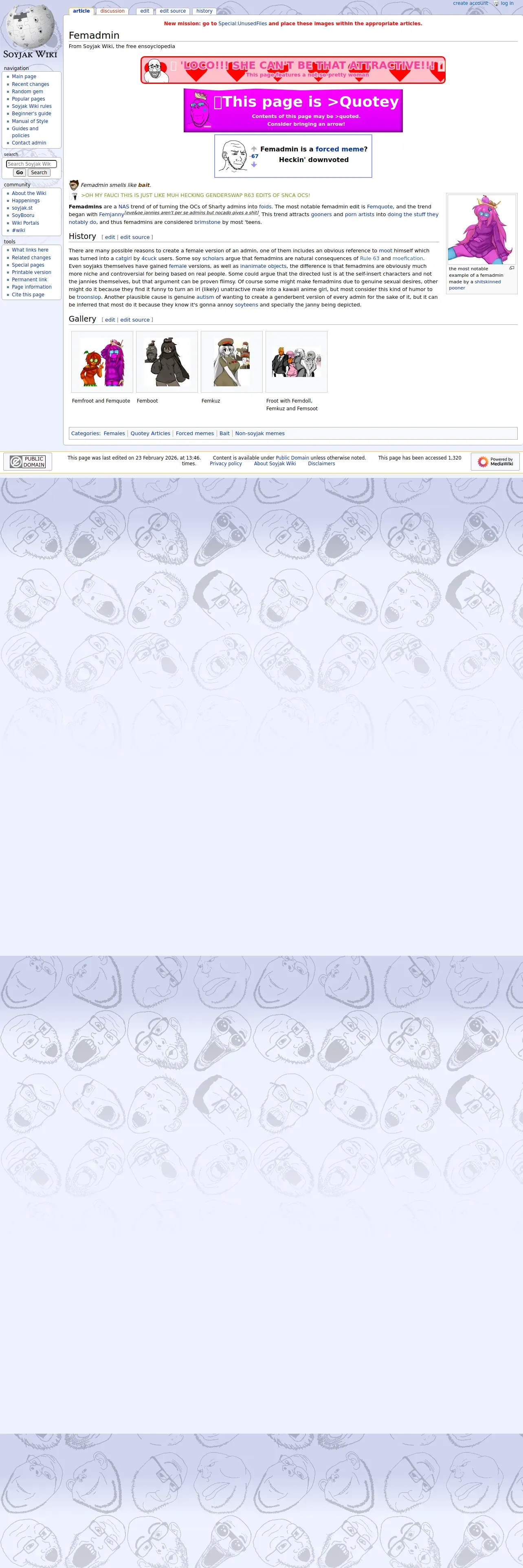 https://soyjakwiki.org:443/Femadmin