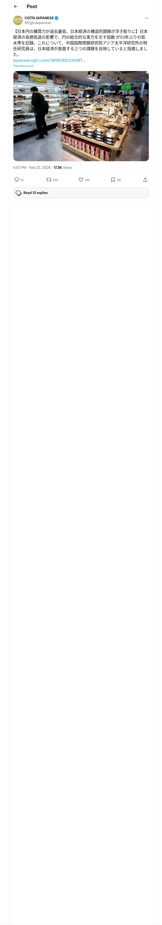 https://x.com:443/CgtnJapanese/status/2025844949099405457