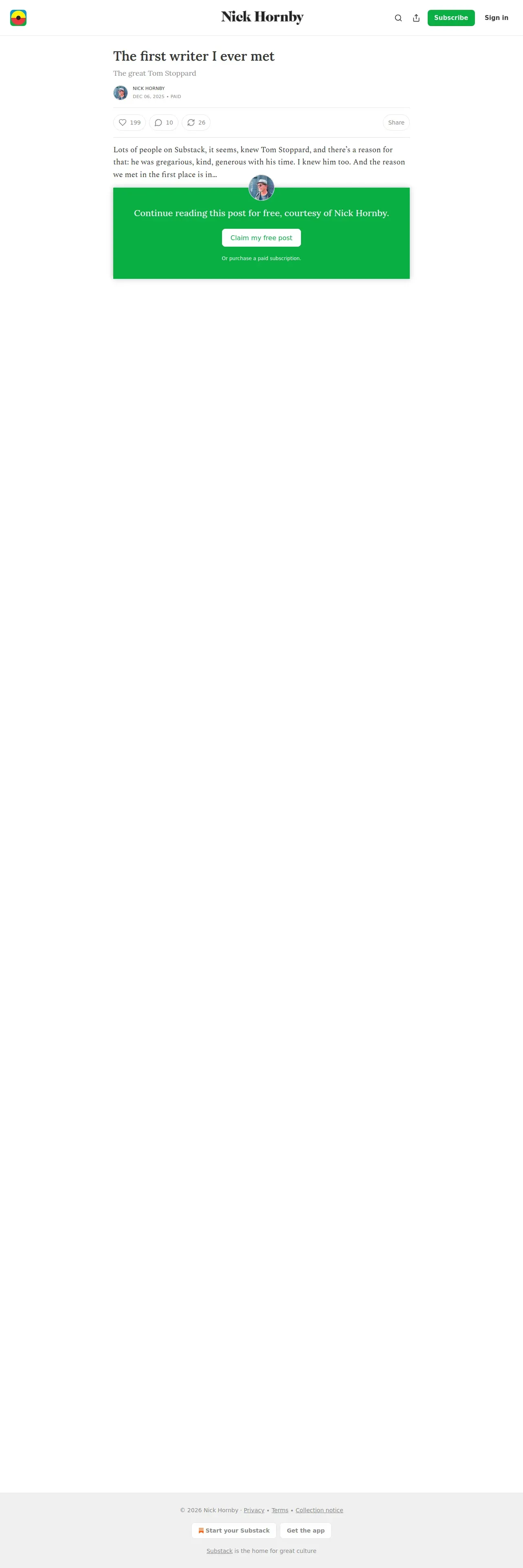 https://nickhornby.substack.com:443/p/the-first-writer-i-ever-met